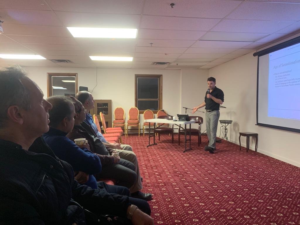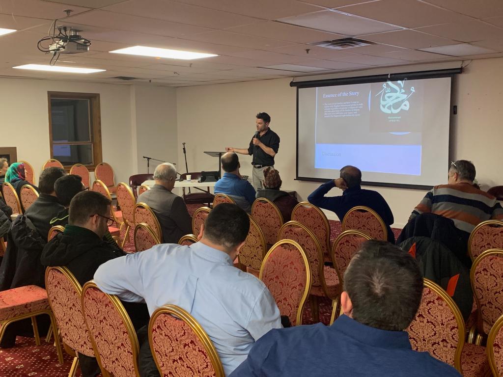 On April 4th after the Maghreb prayer, the potluck dinner started. Participants enjoyed the delicious food and socialized at dinner table. The program started with a beautiful Quran recitation. Michael Hauck was the speaker of the night. Brother Michael presented “our obsession for leadership and superheroes “ topic.